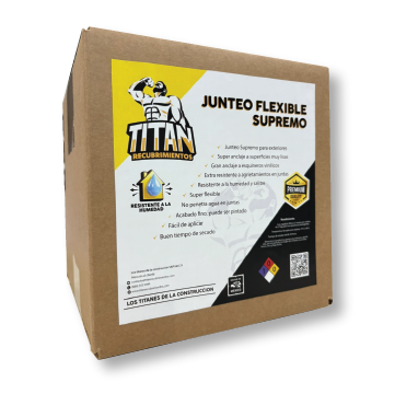 Junteo Flexible Supremo Exterior de TITAN, es un adhesivo de alta resistencia para tratado de juntas, listo para ser usado. Es un producto con gran resistencia a los cambios de temperatura, asentamientos en las estructuras, resistente a las vibraciones ocasionadas por micro sismos y golpes. Excelente en zonas de alta humedad y excelente anclaje a superficies lisas a base de cemento y polímeros de alta calidad.